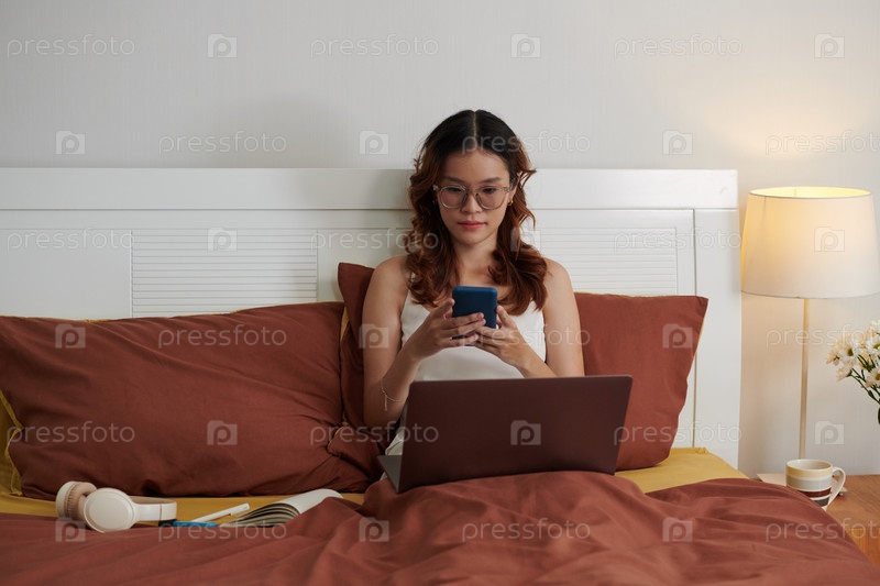 Молодая женщина отправляет сообщения коллегам по работе