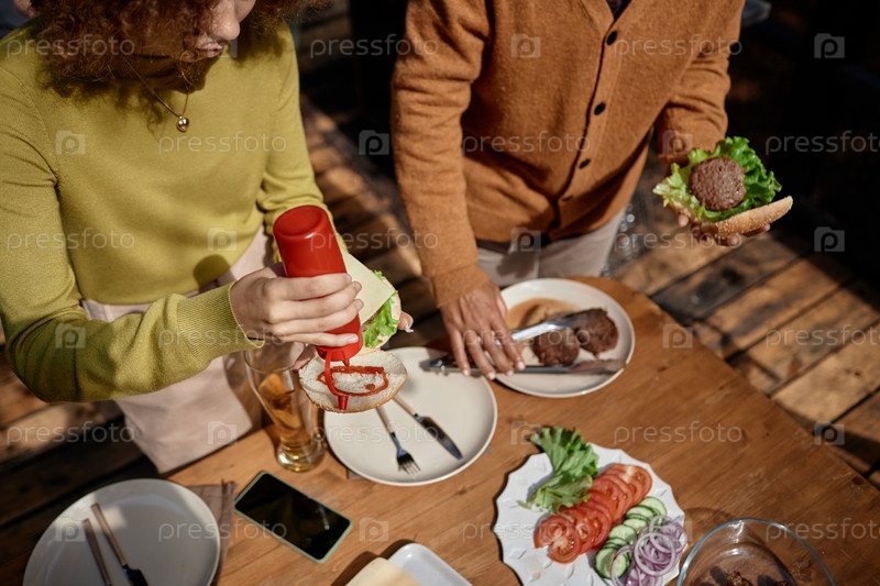 Женщины готовят гамбургеры на пикнике