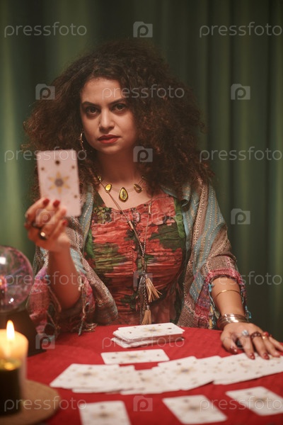 Теллер удачи показывает карточку Таро