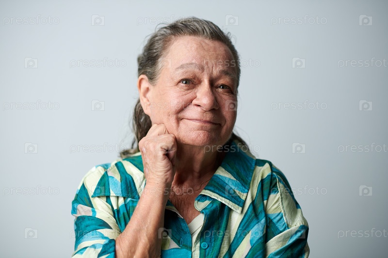 Пожилая женщина улыбается перед камерой