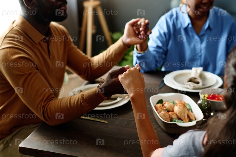 Сосредоточьтесь на руках членов семьи, которые благодарят Господа за праздник