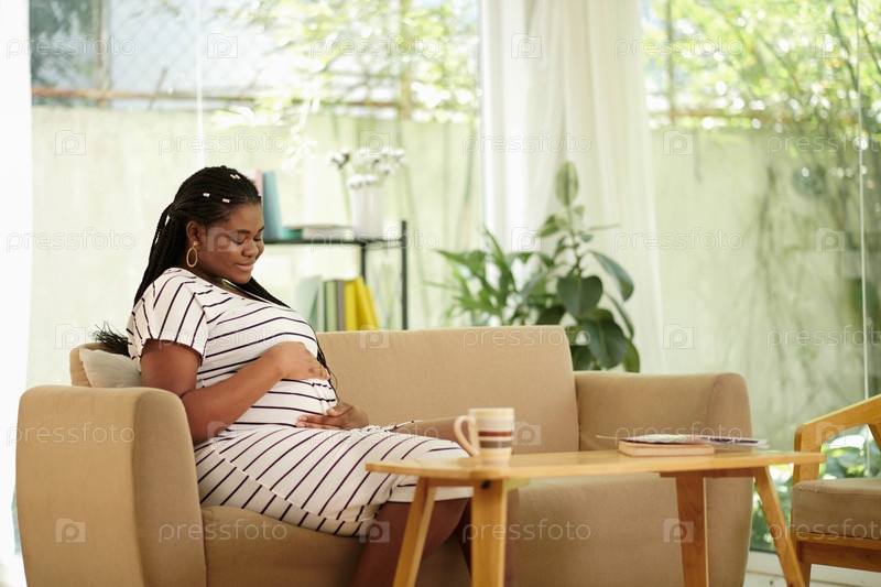 Беременная чернокожая женщина, касающаяся живота
