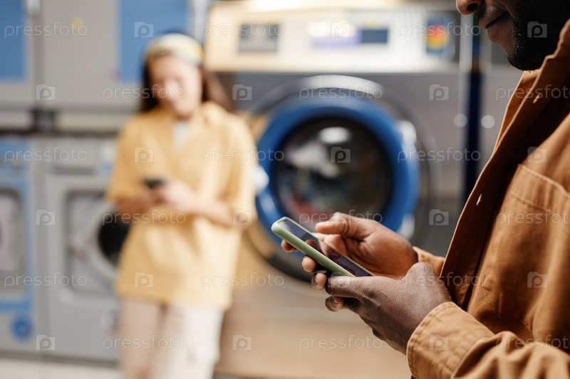 Руки афроамериканского парня, отправляющего сообщения по мобильному телефону против молодой женщины