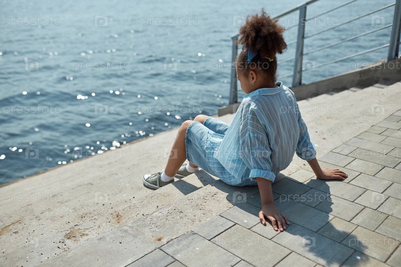 Маленькая девочка отдыхает на пирсе