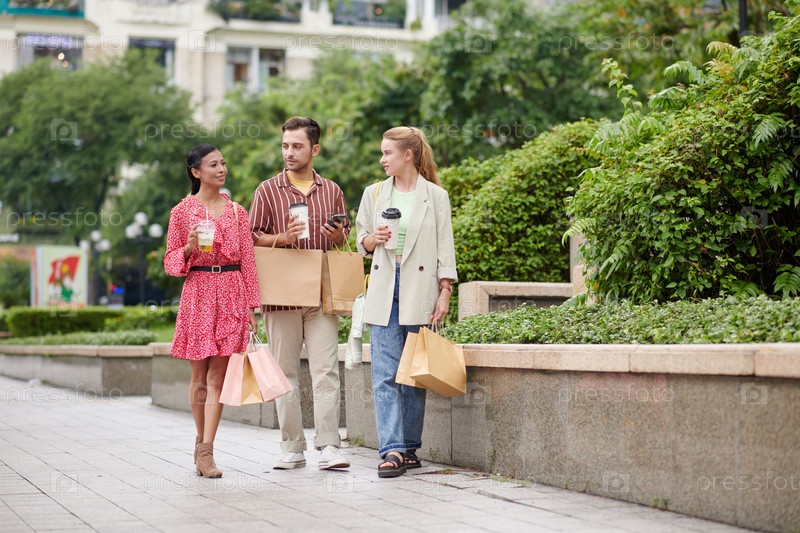 Друзья, ходящие после покупок