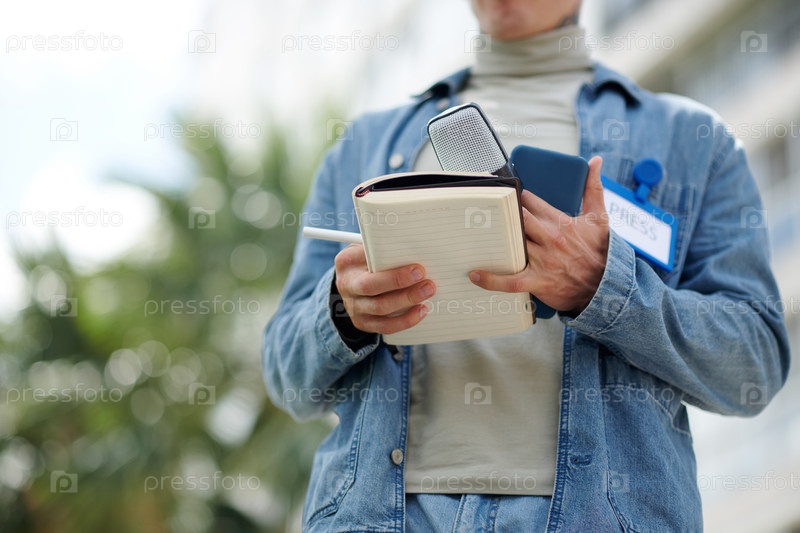 Представитель прессы с планировщиком и микрофоном