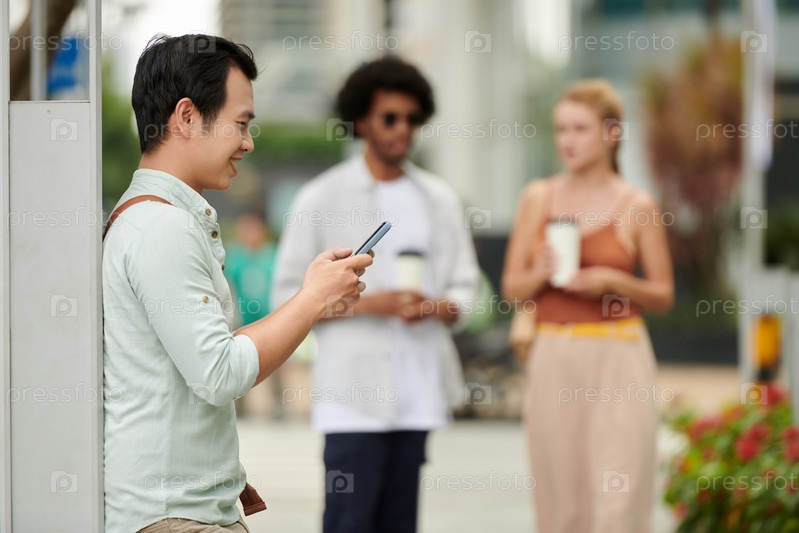 Вьетнамский мужчина отвечает на текстовые сообщения