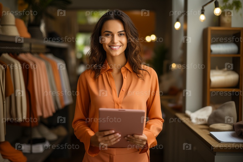 Деловая женщина в своем бутике с планшетным компьютером AI