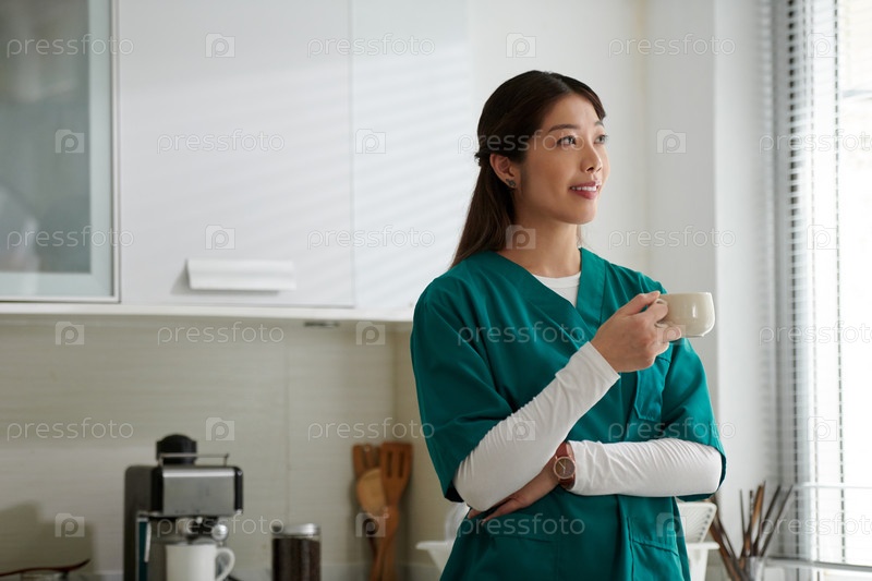 Медсестра Пьет утренний кофе Медицинский