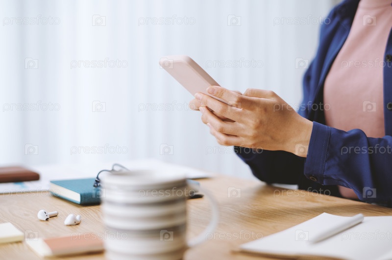 Деловая женщина читает отчет о смартфоне