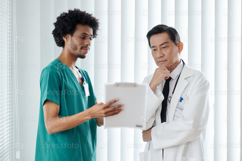 Медсестра показывает медицинскую историю