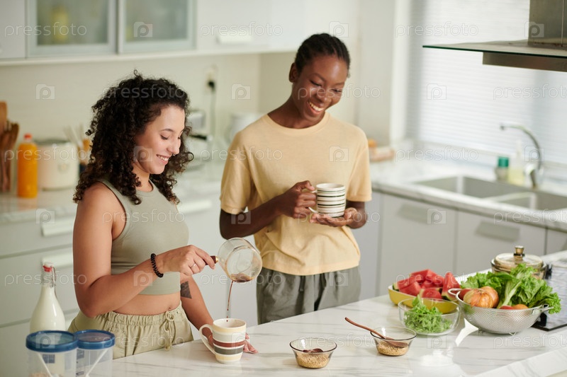 Соседи по комнате пьют кофе на кухне