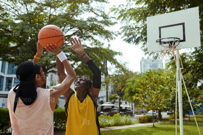 Черные мужчины наслаждаются игрой в баскетбол