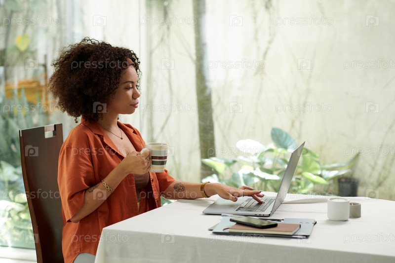 Деловая женщина проверяет электронную почту на ноутбуке