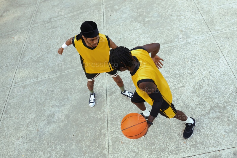 Черный мужчина играет в стритбол