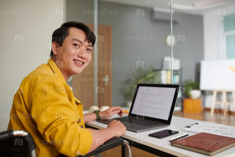Человек с инвалидностью, работающий на компьютере