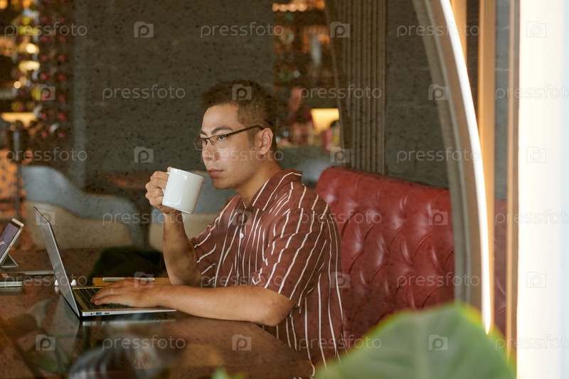 Пенсивный мужчина пьет утренний кофе