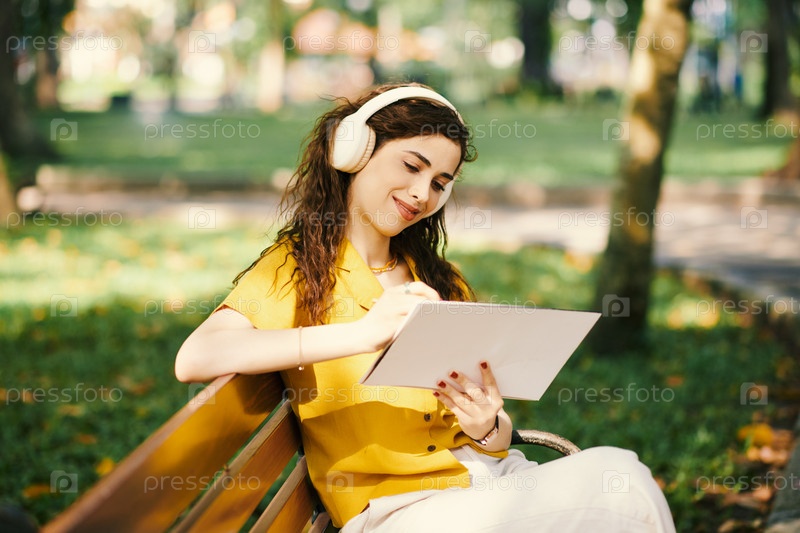 Молодая женщина рисует в городском парке