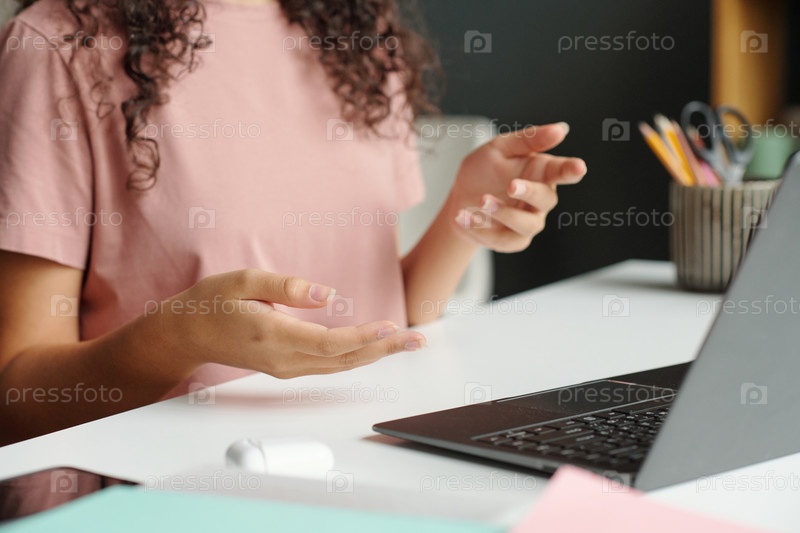 Сосредоточьтесь на руках умного учащегося средней школы, объясняющего что-то