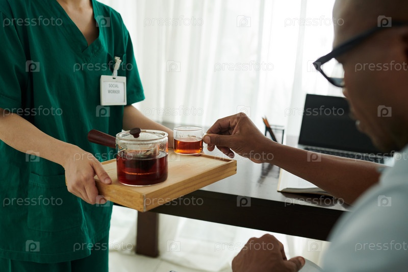 Социальный работник приносит горячий чай