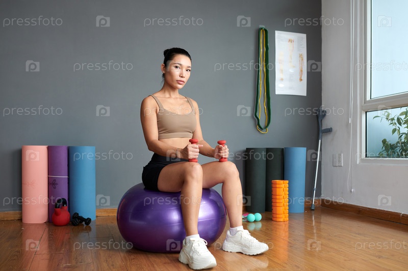 Спортсменка, занимающаяся упражнениями на гантели