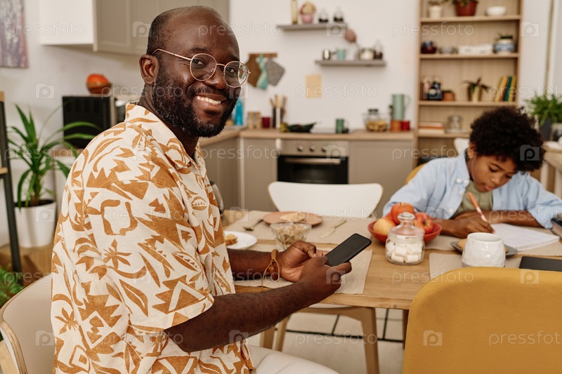 Улыбающийся мужчина отвечает на текстовые сообщения