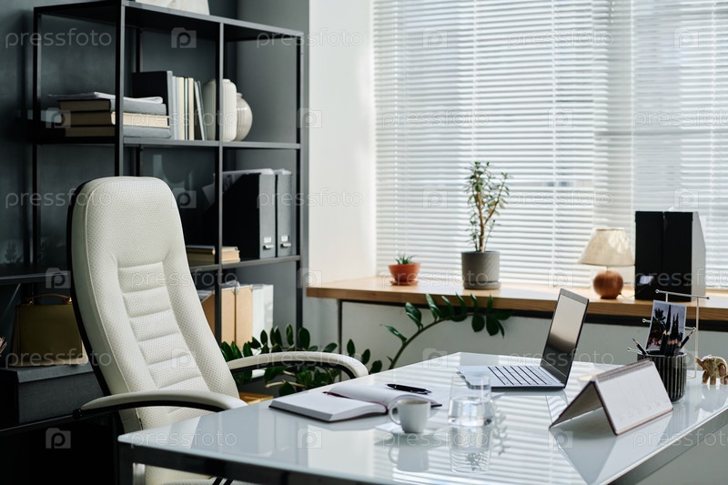 Удобный кресло стоит рядом с рабочим местом главного исполнительного директора