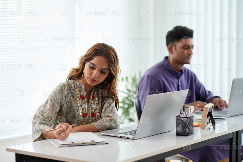 Деловая женщина, анализирующая маркетинговый отчет