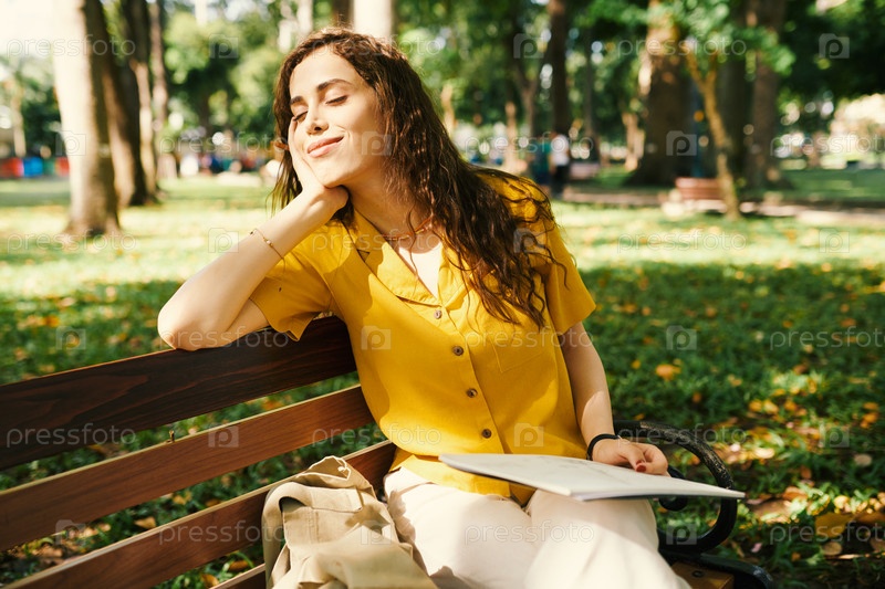 Молодая женщина наслаждается теплыми солнечными лучами