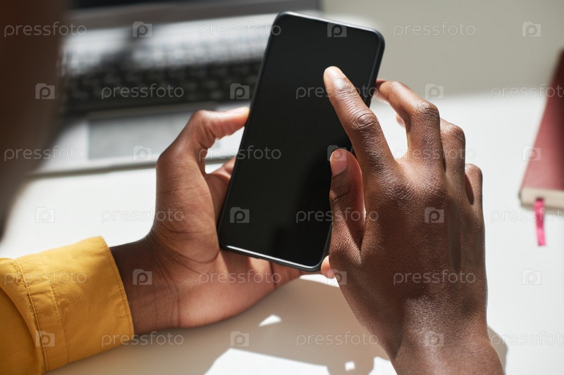 Близкий план рук молодого мужчины-зумера, указывающего на экран смартфона