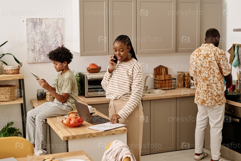 Черная семья на кухне вместе