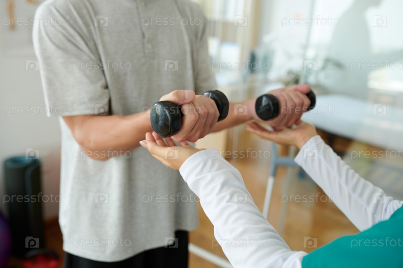 Физиотерапевт помогает пациенту
