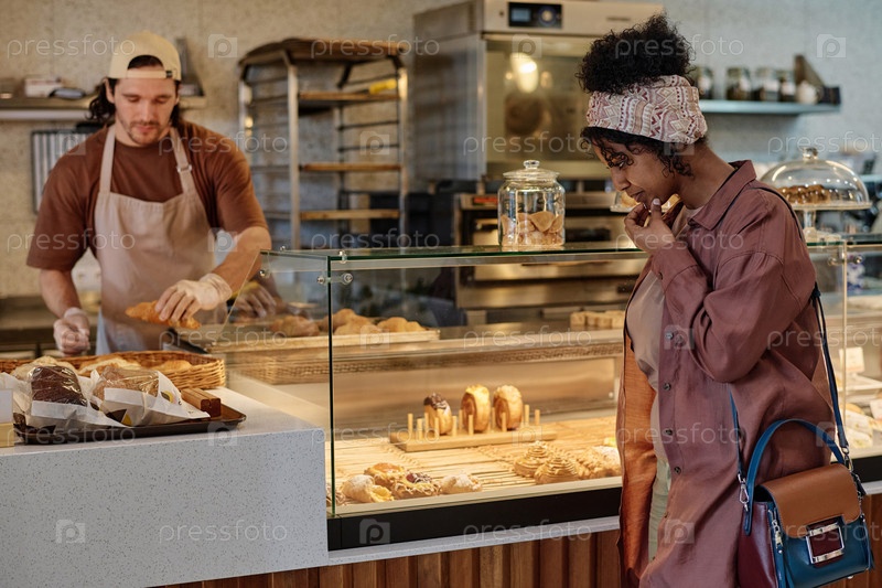 Посетитель кафе выбирает угощение для себя