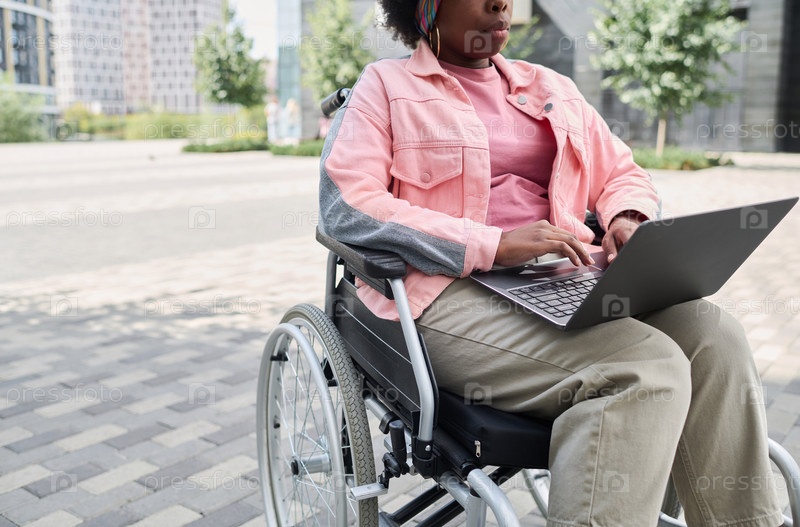 Женщина-инвалид работает на ноутбуке