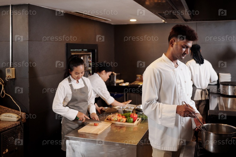 Рабочие на кухне готовят ужин