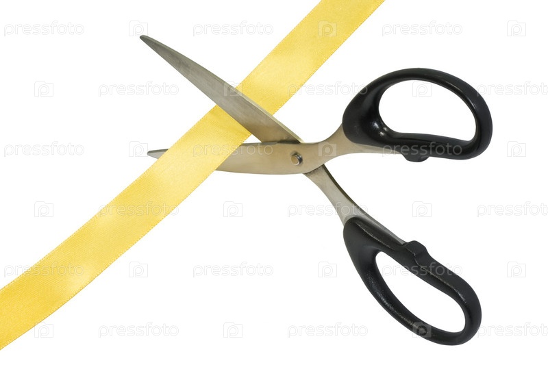 Торжественное открытие, ножницы с золотой лентой