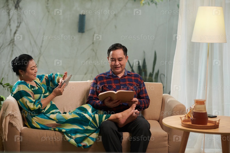 Старшая пара читает книги