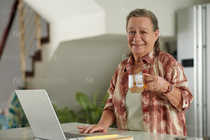 Старшая женщина проверяет электронные письма