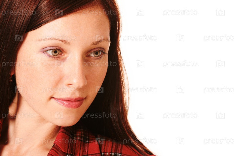 Портрет очаровательной женщины, глядящей в камеру на белом фоне