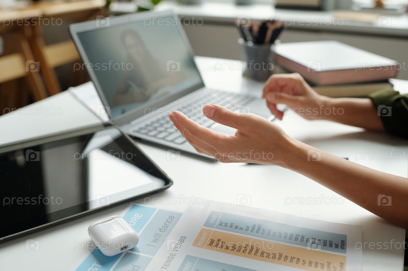 Сосредоточьтесь на руке молодой учительницы английского языка, которая что-то объясняет