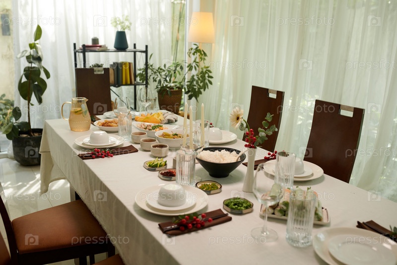 Ужинный стол с различными блюдами