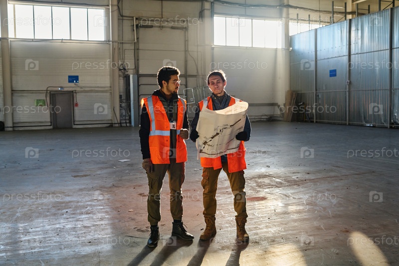 Два молодых мультиэтнических консультанта о деталях плана строительства на встрече