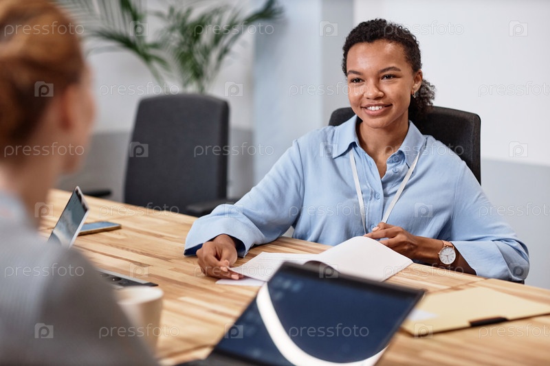 Деловая женщина обсуждает работу с коллегой