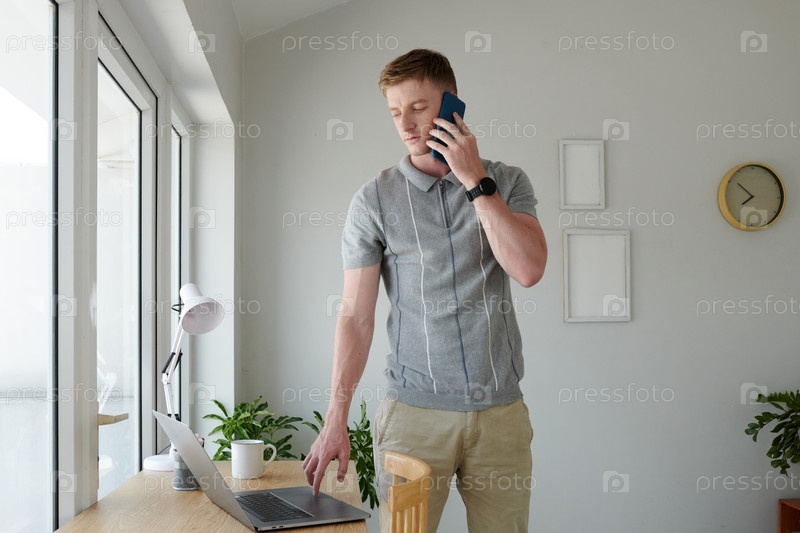 Разработчик программного обеспечения разговаривает по телефону