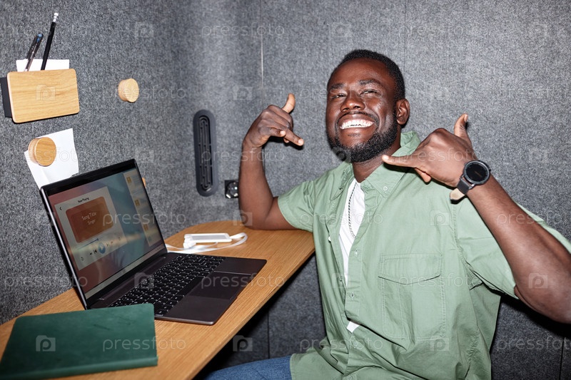 Счастливый бизнесмен, работающий на своем рабочем месте