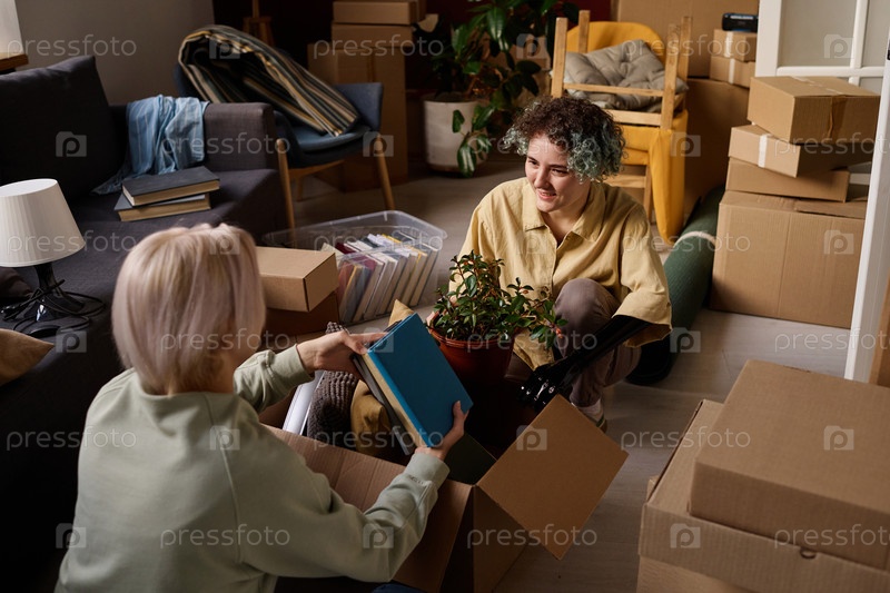 Девушки распаковывают коробки в квартире