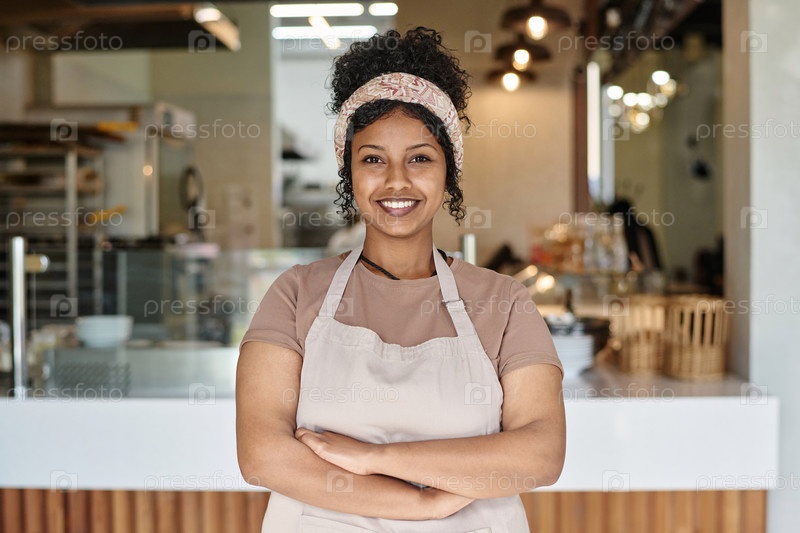 Сотрудник местной пекарни радостно смотрит на камеру