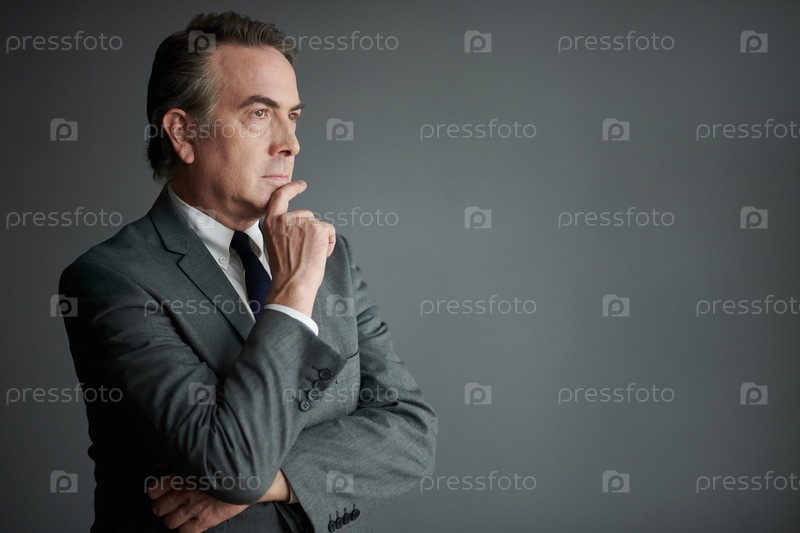 Пенсивный бизнесмен протирает подбородок