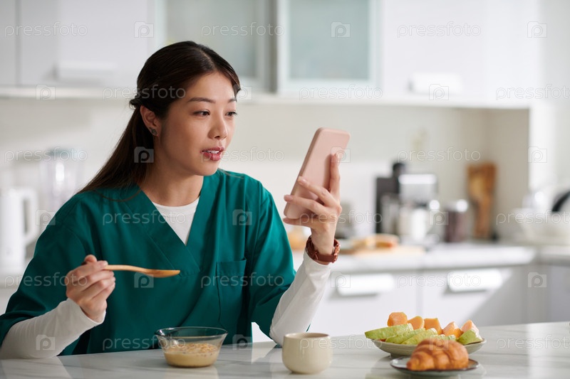 Женщина, завтракающая дома