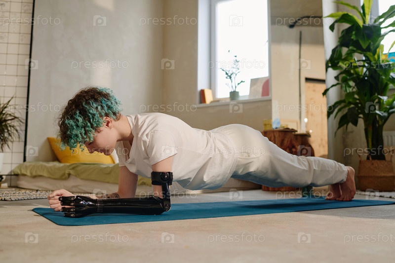 Ампутированная девочка-подросток занимается позицией на доске